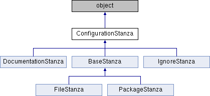 Inheritance diagram for ConfigurationStanza:Public Member Functions | |